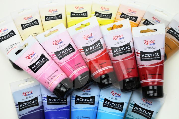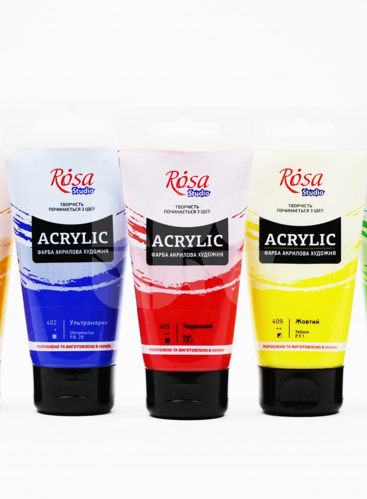 ROSA Studio akrylové farby sú vyvinuté pre umelcov, ktorí pracujú pod šírím nebom, alebo v štúdiách. Akrylové farby sú vyrábané z vysoko kvalitných organických a anorganických jemne mletých pigmentov, so základom z aktuálnych akrylátových disperzií. Rosa – akrylové farby sú vyrábané nasledovaním tradičných postupov pri výrobe. Moderné materiály použité na vytvorenie farieb vedú k silnej elasticite a vysokej odolnosti vrstvy farby voči zmenám teploty a vlhkosti. Krémová konzistencia farieb umožňuje používanie bez riedenia.