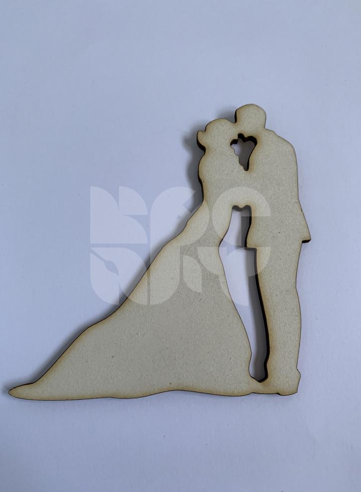 Drevený výrez Mladomanželský bozk, rozmer cca 9,5x9,5cm.