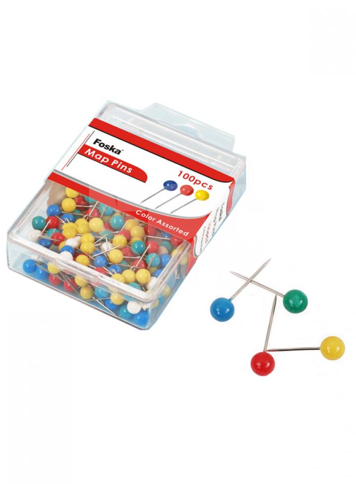 Špendlíky s farebnou hlavičkou v základných farbách sú vhodné do kancelárie, na značenie do máp, na nástenky a podobne.