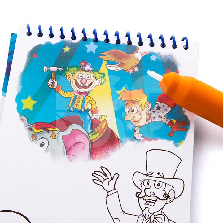 Stačí vodou naplniť pero so štetcom a zábava sa môže začať. Maľovaním vodou sa zmenia biele stránky na farebné. Detičky tak postupne zažijú kopec zábavy pri objavovaní a spoznávaní zvieratiek v Zábavnom parku. Maľovanie pre najmenších výtvarníkov je ideálnym skrátením chvíle čakania u lekára alebo cestovania. Po domaľovaní, stránka vyschne a zbledne na bielu farbu. Dieťatko tak môže opakovane zošit používať a vyfarbovať obľúbené postavičky zo Zábavného parku.