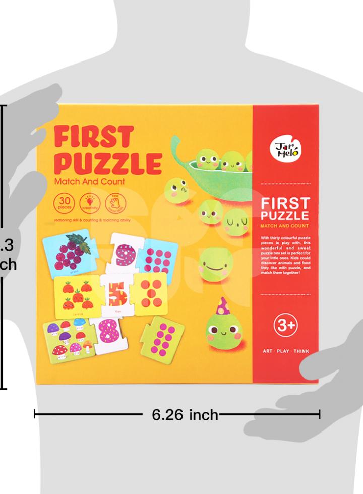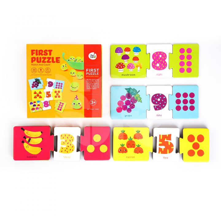 Prvé Puzzle - Počítanie sú určené pre deti, ktoré prichádzajú do kontaktu s číslami po prvýkrát - obsahujú čísla od 1-10, ktoré detičky postupne spoznávajú. Každá čislica tvorí trojicu spolu s ďalšími dvoma puzzle dielikmi - jeden dielik znázorňuje predmety v danom počte na jednoduchých farebných obrázkov, druhý má zobrazené bodky v prislúchajúcom počte. Puzzle rozvíja jemné motorické zručnosti, trénuje pamäť a pozornosť.