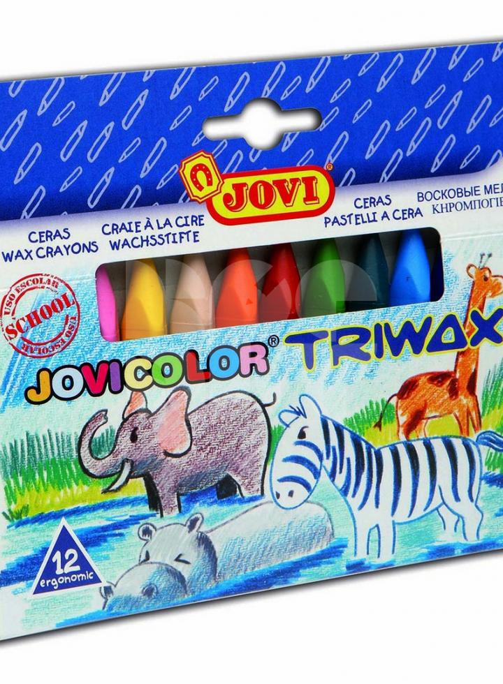 JOVI voskovky nepúšťajú farbu, sú bez vône a nezlomia sa ani pri páde z výšky. K dispozícii sú v jasných a živých farbách a možno s nimi kresliť na papier, kartón, drevo, textil, plast a rôzne iné povrchy. Obsahujú včelý vosk. Sú vhodné pre najmenších, kedže si ich budú vedieť pekne uchopiť. Balenie obsahuje 12 farieb - žltá, oranžová, červená, fialová, zelená, svetlo modrá, modrá, hnedá, čierna, biela. Pozor: produkt obsahuje malé časti, ktoré môže dieťa ľahko prehltnúť. Nedávať do úst. Jovi je vynikajúci španielsky výrobca z Barcelony, ktorý sa zameriava hlavne na produkty pre deti, kde dbá na ich kvalitnu, prevedenie a využitie. Vyskúšajte a určite si túto značku zamilujete aj vy.