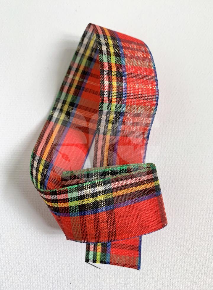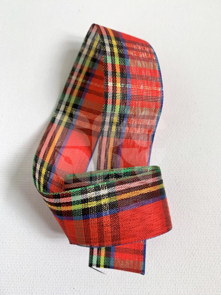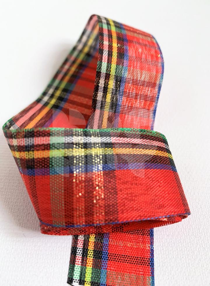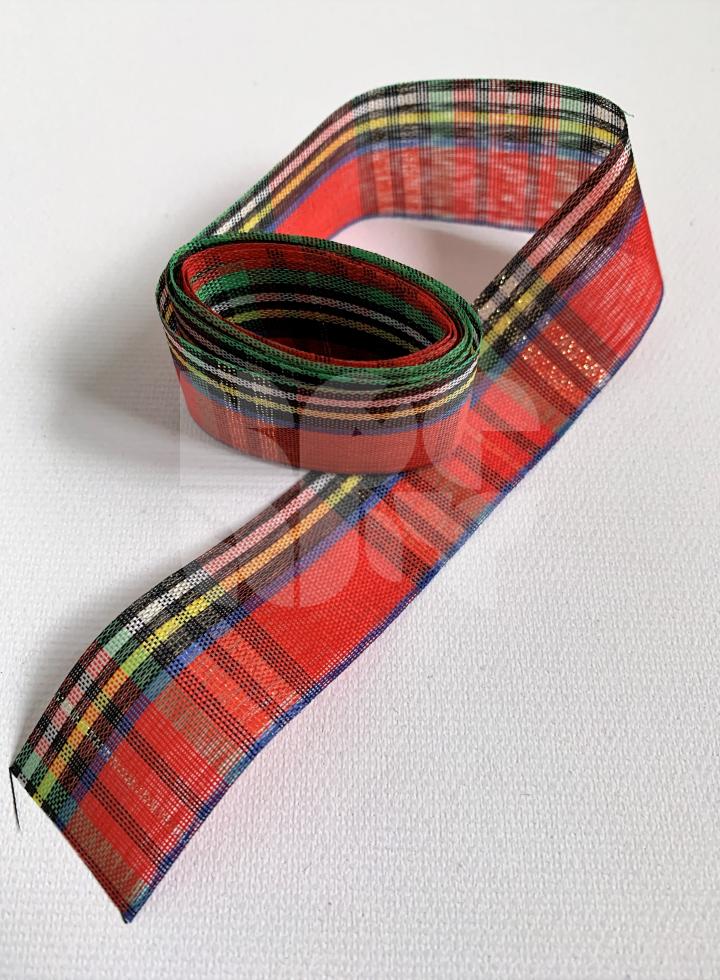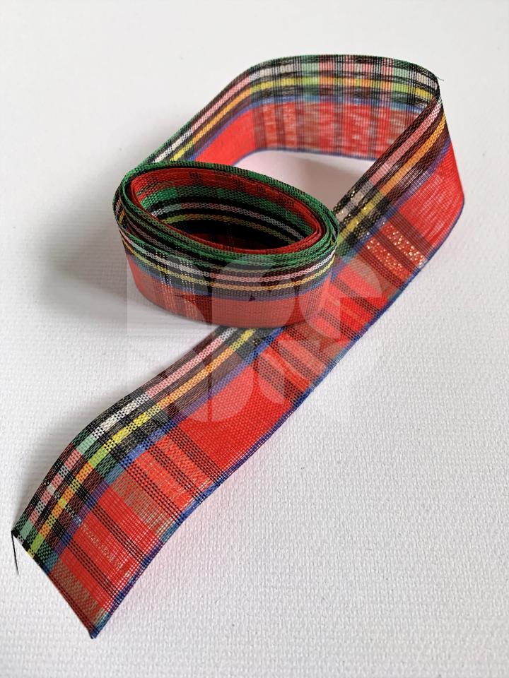 Viacfarebná polyesterová stuha so zlatým lurexovým detailom so šírkou 25mm a dĺžkou 2m. Stuha je dekoratívna. Neodporúča sa prať ani žehliť.