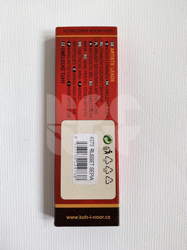 Umelý uhlík, takzvaná rudka. Balenie obsahuje russet sépiu, teda červeno-hnedú sépiu. Priemer tuhy: 5,6 mm. Dĺžka tuhy: 120 mm