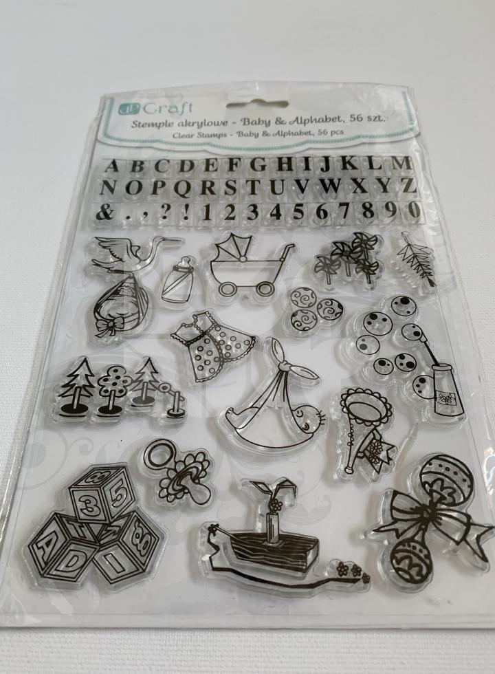 Sada silikónových pečiatok s motívom "narodenie dieťaťa" vrátane abecedy a čísel. Balenie obsahuje 56 kusov.