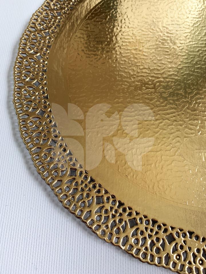 Kvalitný pevný podnos s priemerom 38cm a okrajom s krajkovým vzorom.